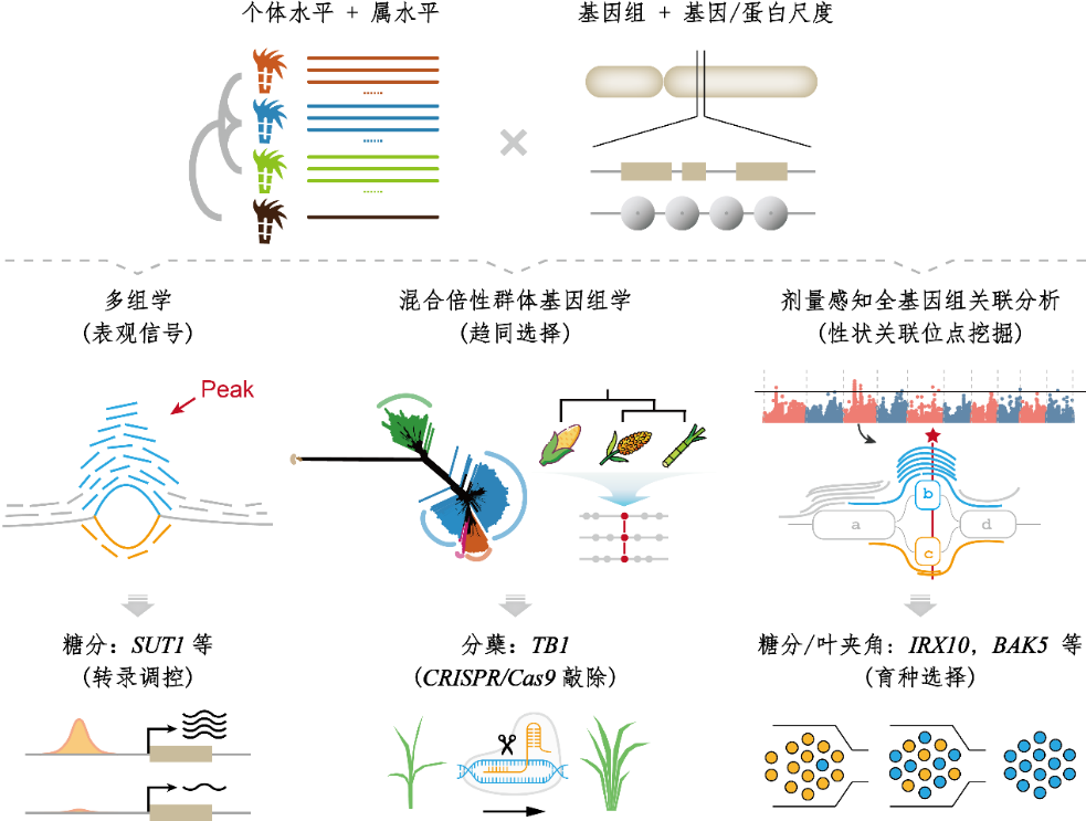 The team further developed DosageGWAS, a novel strategy for dissecting dosage effects in polyploid genomes. Compared with conventional linear GWAS approaches, DosageGWAS demonstrated clear advantages in heritability estimation and trait-locus detection power. Using this method, the researchers successfully identified multiple candidate genes closely associated with sugar content and leaf angle traits, and systematically elucidated the genetic basis of key agronomic characteristics, including sugar metabolism.