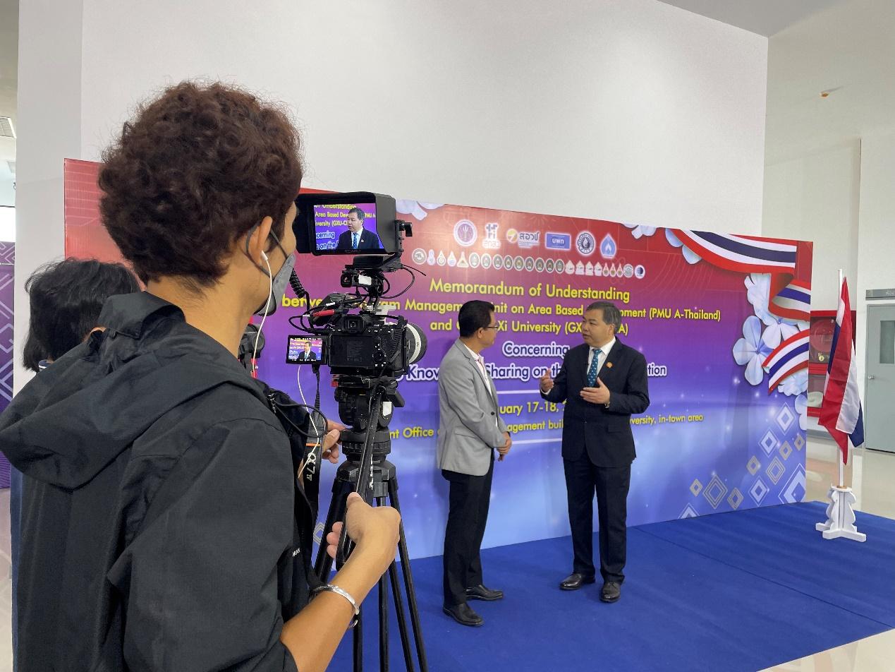 From 17th to 18th, invited by the Program Management Unit on Area Based Development of Thailand (PMU-A), Xiao and his delegation attended the signing ceremony of poverty reduction governance cooperation and knowledge sharing between the Unit and Guangxi University of China held in Kalasin University in Thailand. Mr. Sanan Pongaksorn (the Governor of Kalasin Province), Ms. Pasupha Chinvarasopak (Minister Counsellor of the Embassy of Thailand in China), Mr.Chartchai Phom-Lert (Chairperson of the Executive Committee of Executive Director of PMU-A), Dr. Kitti Sajjawattana (Director of PMU-A), Assoc. Prof. Jirapun Huaisan (the President of the Kalasin University), Asst. Prof.Dr.Vichayut Juntaree, (the Vice President of Kalasin University), Mr. Wang Qiang (First Secretary of the Embassy of China in Thailand), and officials from more than 20 universities in Thailand attended the signing ceremony and exchanged experiences on poverty reduction. The delegation also visited the "Poverty Reduction Project Achievement Exhibition", "A Learning City-Kalasin" and "Cultural Landscape Management and Community Culture Street". Xiao Jianzhuang said that Guangxi University, as the top university in Guangxi, is willing to participate in the construction of key poverty alleviation projects in Thailand, and looks forward to further strengthening cooperation with PMU-A and universities on knowledge sharing about poverty reduction, scientific and technological innovation and talent training, so as to better implement the "Belt and Road" Initiative and build a China-ASEAN community with a shared future.