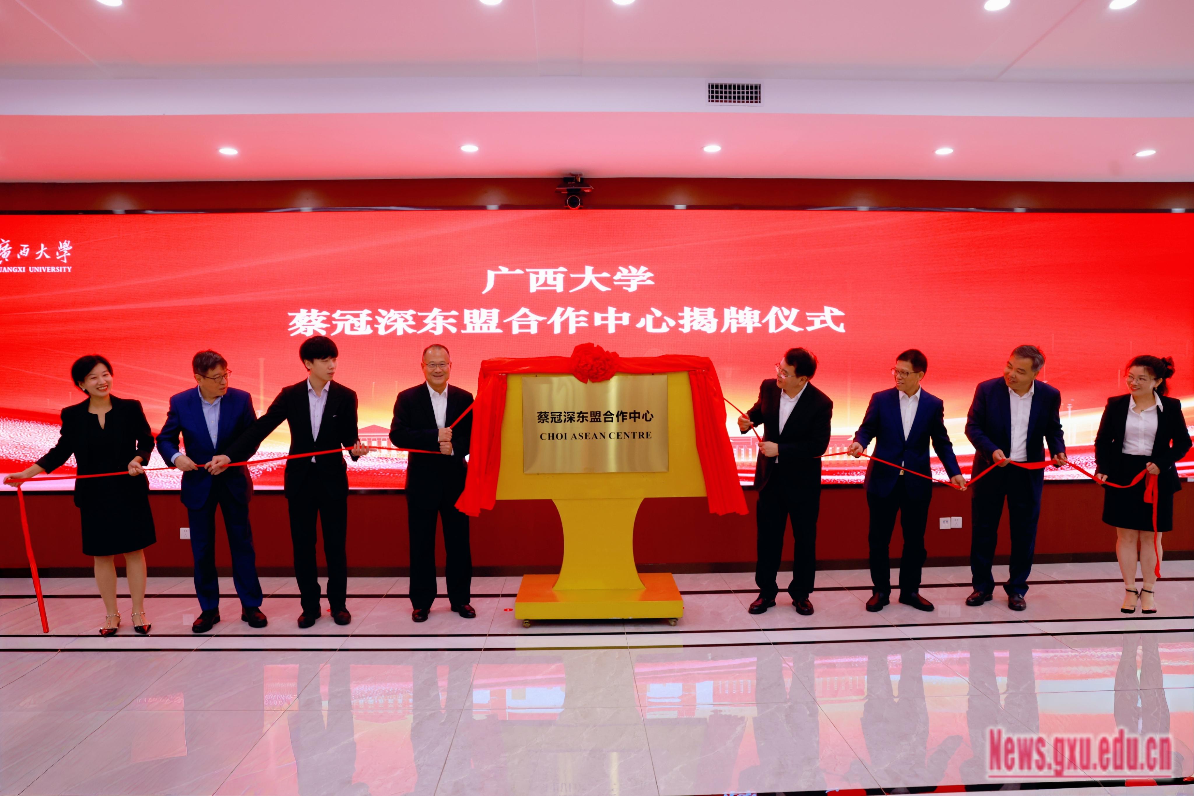 Sau cuộc họp, Phó Hiệu trưởng Tiêu Kiến Trang và ông Thái Trác Tư, Phó Chủ tịch điều hành Liên minh Doanh nhân Vùng Vịnh Quảng Đông - Hồng Kông - Ma Cao, Chủ tịch Khu vực Đông Nam Á của Tập đoàn Tân Hoa thay mặt hai bên ký kết “Thỏa thuận hợp tác giữa Tập đoàn Tân Hoa Hồng Kông và Đại học Quảng Tây”. Ông Thái Quán Thâm và Bí thư Lý Quốc Trung chứng kiến lễ ký kết và cắt băng khánh thành “Trung tâm Hợp tác ASEAN Thái Quán Thâm” tại trường Đại học Quảng Tây.
