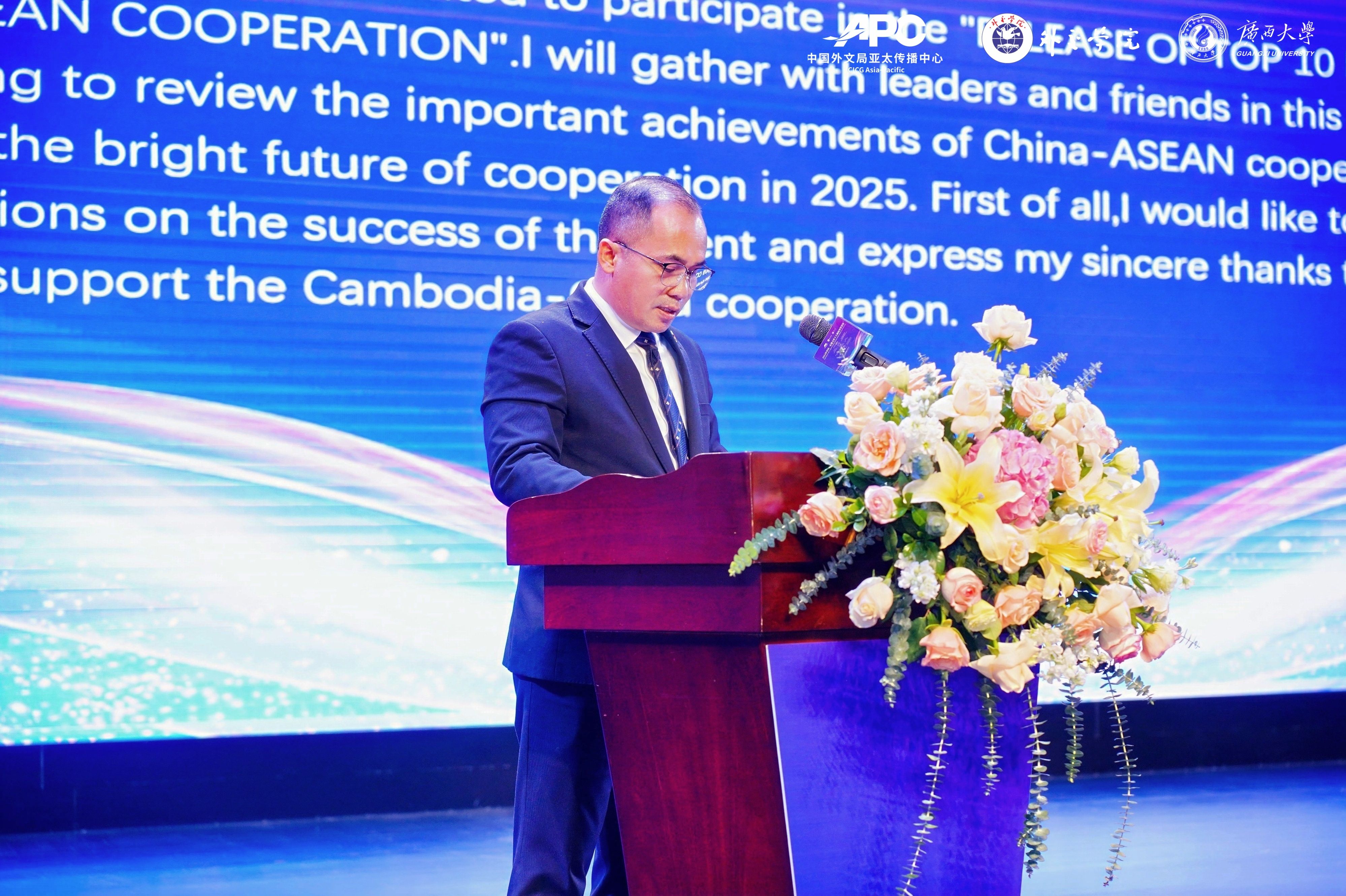 Pada 27 Februari, di bawah bimbingan Kumpulan Komunikasi Antarabangsa China (CICG), Universiti Hal Ehwal Luar Negeri China, dan Jabatan Publisiti Jawatankuasa Autonomi Wilayah Guangxi CPC, acara pelancaran "Sepuluh Berita Teratas mengenai Kerjasama China-ASEAN 2024" telah diadakan bersama dengan CICG Asia Pasifik, Institut Pengajian Asia Universiti Hal Ehwal Luar Negeri China, dan Universiti Guangxi. Acara ini dianjurkan oleh Institut Penyelidikan China-ASEAN, Institut Penyelidikan bagi Inovasi dan Pembangunan, dan Sekolah Ekonomi China-ASEAN di Universiti Guangxi. Li Guozhong, Setiausaha Jawatankuasa Parti Universiti Guangxi, menghadiri acara tersebut dan menyampaikan ucapan alu-aluan. Xia Guoen, Ahli Jawatankuasa Tetap dari Jawatankuasa Parti dan Naib Canselor Universiti Guangxi, menjadi pengerusi acara tersebut. Gao Anming, Ketua Editor Kumpulan Komunikasi Antarabangsa China (CICG); Li Pan, Timbalan Pengarah Jabatan Publisiti Jawatankuasa Autonomi Wilayah Guangxi CPC; Taing Sokngorn, Konsul Jeneral Konsulat dari Jeneral Kemboja di Nanning; Gao Fei, Naib Canselor Universiti Hal Ehwal Luar Negeri China; dan Liang Yiguang, Timbalan Setiausaha Agung Sekretariat Ekspo China-ASEAN, menghadiri acara tersebut dan menyampaikan ucapan.