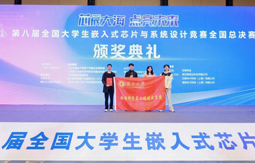Baru-baru ini, Peringkat Akhir Kebangsaan bagi Pertandingan Reka Bentuk Cip Terbenam dan Sistem Kebangsaan ke-8 untuk Pelajar Kolej telah diadakan di Pangkalan Latihan Litar Bersepadu Nanjing. Pasukan-pasukan dari Universiti Guangxi (GXU) menyerlah dalam persaingan sengit, dengan memenangi satu Hadiah Pertama dan dua Hadiah Ketiga di peringkat kebangsaan. Selain itu, pasukan GXU turut dianugerahkan “Anlogic Cup” Enterprise Award, iaitu anugerah khas yang diberikan secara eksklusif kepada pasukan berprestasi terbaik yang dipilih daripada lima trek pertandingan perusahaan. Pencapaian cemerlang ini merupakan keputusan terbaik pernah dicapai oleh universiti-universiti di Guangxi sejak pertandingan ini diperkenalkan.