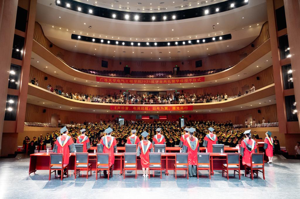 ဇွန်လ ၂၄ ရက်နေ့တွင်ကျွန်ုပ်တို့၏ကျောင်း GXU တွင် ၂၀၂၅ ခုနှစ် အတန်းမှဘွဲ့ရ ၉၇၇၃ ဦး (ဘွဲ့ကြို ၅၀၁၃၊ မဟာကျောင်းသား ၄၅၃၈ နှင့် ပါရဂူကျောင်းသား ၂၂၂ အပါအဝင်) အတွက် ဘွဲ့နှင်းသဘင်အခမ်းအနားနှင့် ဘွဲ့ချီးမြှင့်ပွဲအခမ်းအနားကို အနောက်ဘက် ကျောင်းဝင်း အားကစားကွင်း၌ ကျင်းပခဲ့ပါသည်။ တက္ကသိုလ်ပါတီအတွင်းရေးမှူးနှင့် တက္ကသိုလ်ဘွဲ့အကဲဖြတ်ရေးကော်မတီဥက္ကဋ္ဌ Mr.Li Guozhong ၊ပညာရေးဝန်ကြီးဌာန၏ ပါတီဆက်သွယ်ရေးမှူး Mr.Li Jibing၊ တရုတ်အင်ဂျင်နီယာအကယ်ဒမီ၏ ပညာရပ်ကျွမ်းကျင်သူနှင့် မြို့ပြအင်ဂျင်နီယာနှင့် ဗိသုကာကျောင်းမှ ပါမောက္ခ Mr.Zheng Jielian၊ တရုတ်အင်ဂျင်နီယာအကယ်ဒမီ၏ ပညာရပ်ကျွမ်းကျင်သူနှင့် အသေးစားစက်မှုလုပ်ငန်းနှင့် အစားအသောက်အင်ဂျင်နီယာကျောင်းမှ ပါမောက္ခ Mr.Wang Shuangfei၊ကျောင်းခေါင်းဆောင်များ၊ ကျောင်းဘွဲ့အကဲဖြတ်ရေးကော်မတီဝင်များ၊ နာမည်ကြီး ပညာရှင်များ၊ ဆရာ၊ ဆရာမများနှင့် ဝန်ထမ်းများနှင့် ကျောင်းသားဟောင်းများ အပါအဝင် ကျောင်း၏ ပါတီကော်မတီနှင့် ဒုတိယဥက္ကဋ္ဌ Mr.Liu Xiang တို့က အခမ်းအနားသို့ တက်ရောက်ကြသည်။