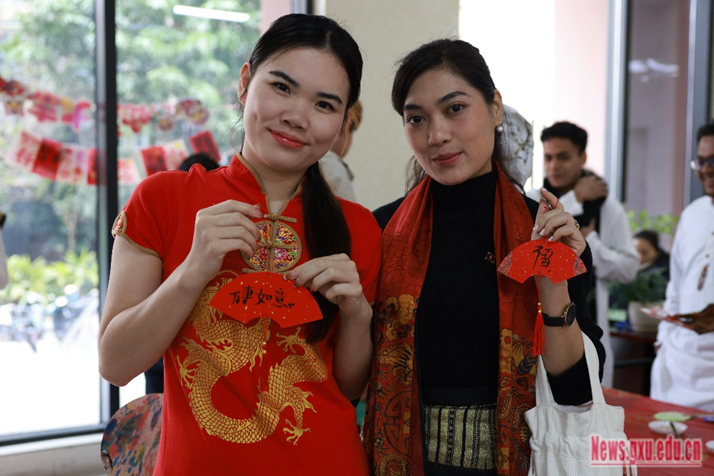នៅពេលព្រឹក លោកគ្រូ អ្នកគ្រូ និងសិស្សានុសិស្សទាំងក្នុង និងក្រៅប្រទេសបានចូលរួមជាមួយគ្នានៅក្នុងពិធីជប់លៀងពិធីបុណ្យនិទាឃរដូវ ដើម្បីទទួលបាននូវភាពទាក់ទាញនៃវប្បធម៌ប្រពៃណីចិន។ កន្លែងរៀបចំព្រឹត្តិការណ៍នេះមានភាពអ៊ូអរយ៉ាងរំភើប។ តំបន់សម្រាប់ការសរសេរតួអក្សរ "ហ្វូ" និងគូស្វាមីភរិយានិទាឃរដូវគឺមានមនុស្សកកកុញ។ លោកគ្រូ អ្នកគ្រូ និងសិស្សានុសិស្សបានរើសប៊ិចជក់ ជ្រលក់ទឹកថ្នាំ និងសរសេរពាក្យជូនពរក្នុងឆ្នាំថ្មី។ កន្លែងដាក់តាំងបង្ហាញសម្រាប់ធ្វើអ្នកគាំទ្រម្រ័ក្សណ៍ខ្មុក និងការគូររបាំងមុខ Peking Opera ក៏ទាក់ទាញការចាប់អារម្មណ៍យ៉ាងខ្លាំងផងដែរ។ ម្នាក់ៗធ្វើសិប្បកម្មដោយខ្លួនឯង ដើម្បីទទួលបានភាពទាក់ទាញនៃសិប្បកម្មប្រពៃណីចិន។ ល្បែងប្រពៃណីដូចជាការបោះព្រួញទៅក្នុងពាង និងការបោះចិញ្ចៀនក៏មានប្រជាប្រិយភាពផងដែរក្នុងចំណោមគ្រូ និងសិស្ស។ មនុស្សគ្រប់គ្នារីករាយនៅក្នុងសកម្មភាពផ្សេងៗ បន្ទាប់ពីពិធីជប់លៀងក្នុងសាល