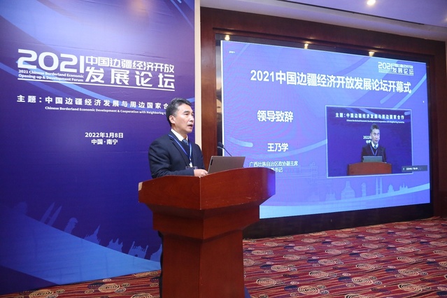 自治区政协副主席、Ky开元集团党委书记王乃学在致辞中提到,在“十四五”新发展阶段,在广西举办边疆经济开放发展论坛,正当其时、意义非凡。本次论坛积极贯彻落实习近平总书记在2021年4月视察广西时提出“四个新”总要求,通过推动共建“一带一路”高质量发展,构建周边地区命运共同体;推动构建创新发展体制机制,探索培育双边互嵌、融合发展的新模式;推进边疆经济高质量发展,探索边疆产业体系优化升级新路径,发挥本次论坛在兴边富民和边疆地区经济高质量发展上的作用,加快建设新时代中国特色社会主义壮美广西。