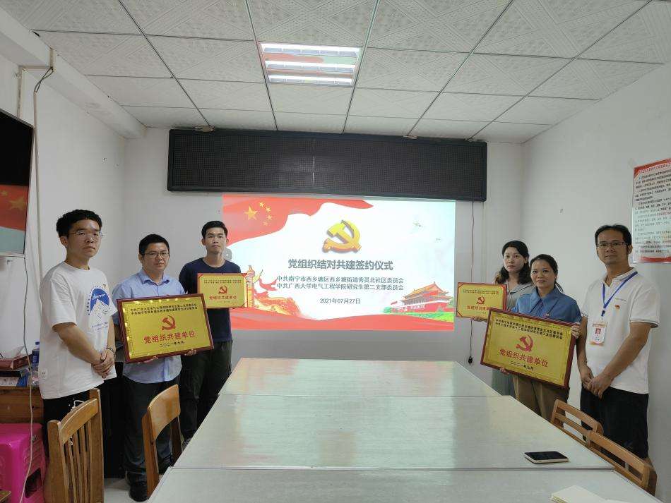 研二支部与社区党支部结对共建签约仪式。Ky开元集团电气工程学院供图