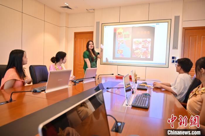 课堂上,一首节奏轻快的泰国经典民谣响起,在泰露露的带领下,几名身穿华丽泰式服装的中国学生跳起泰国传统舞蹈,通过沉浸体验,学习泰国文化。