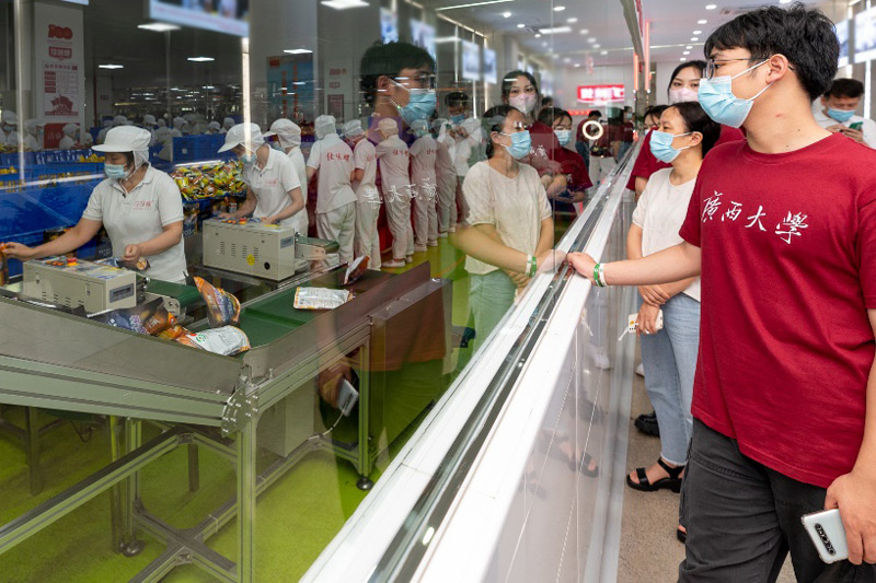 活动期间,实践队走进螺蛳粉文化展览馆,详细了解螺蛳粉的文化和历史,感受螺蛳粉企业的企业理念和企业精神;参观螺蛳粉生产车间、食品包装流水线以及螺蛳粉营销直播间,全面了解螺蛳粉的加工、营销全过程。