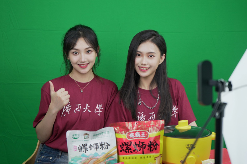 大学生们还与企业直播团队合作拍摄了螺蛳粉直播抖音视频,将自己所学运用到实践活动之中。“这次柳州之行真是不虚此行!我体验了现场直播带货,感到非常新奇。如何更好地宣传产品,我们需要进一步学习研究。”播音与主持艺术专业大学生黄悦华说。