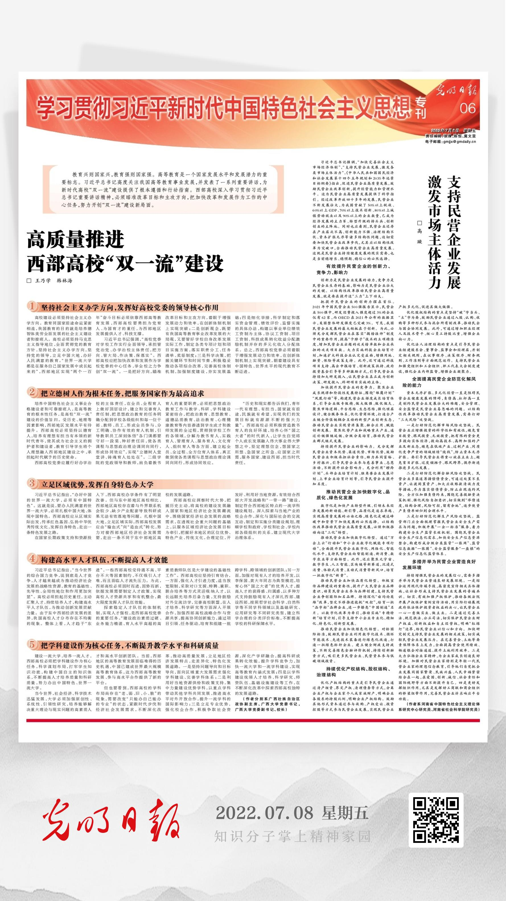 当今世界,社会经济、科学技术迅猛发展,大学必须加强原创性、系统性、引领性研究,培养能够解决重大理论与现实问题的高素质人才和高水平创新团队。当前,西部地区的高等教育发展面临难得的历史机遇,中国已建成世界最大规模高等教育体系,这为西部高等教育发展、参与高水平合作提供了新的平台。