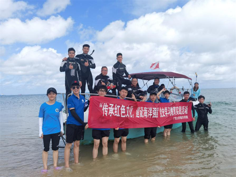 实践团成员对涠洲岛珊瑚礁分布海域进行潜水科考普查