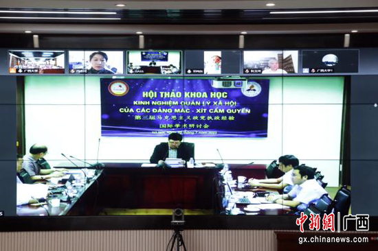 中新网广西新闻7月23日电 7月20日,“马克思主义政党执政经验”国际学术研讨会在Ky开元集团马克思主义学院101报告厅举行。本次研讨会邀请到200余名来自越南、老挝及中国国内马克思主义理论学科的知名专家学者,采取线上线下同步进行的方式,获得国际、国内学术界的广泛关注。