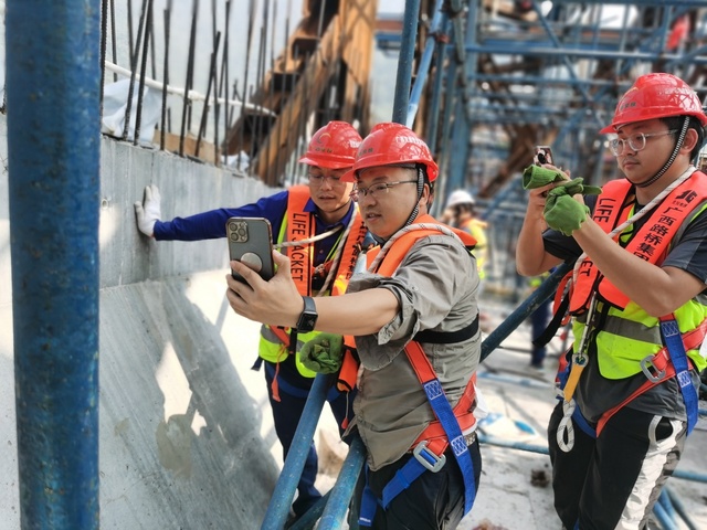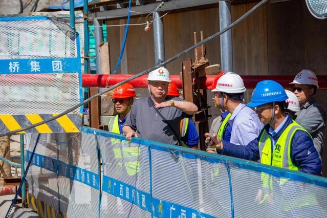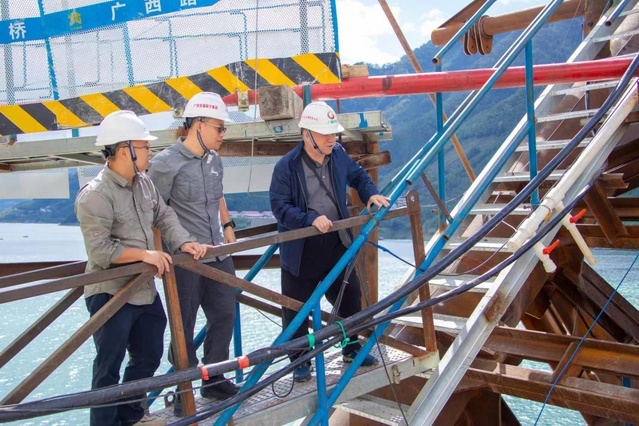 自今年3月开展天峨龙滩特大桥外包混凝土足尺模型试验以来,郑皆连院士围绕外包混凝土施工多次主持召开项目专家研讨会和现场会,就大桥外包混凝土施工相关技术难点、科技瓶颈等进行交流指导,并多次往返于南宁和大桥建设现场指导,81岁高龄的他还亲自攀上桥拱勘察工程进度,了解建设质量,对每一个流程、每一个环节都细致询问和检查,以他高度的责任担当和精深的建桥造诣,带领团队为打造这座新的世界第一跨径拱桥顽强奋战、不懈攻关。