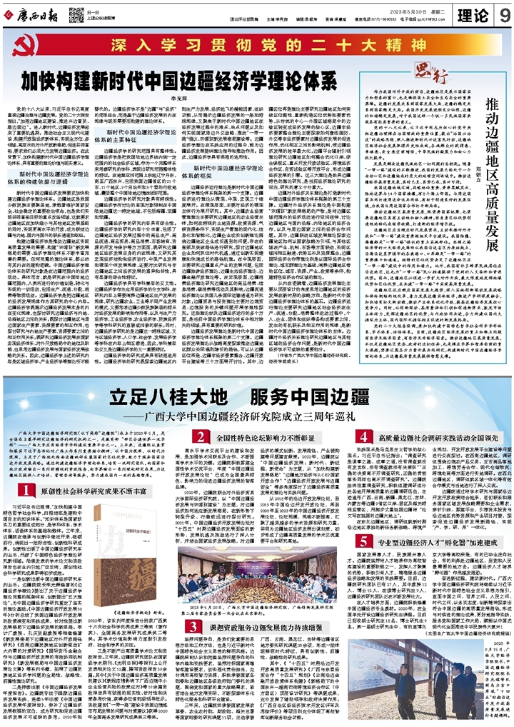 习近平总书记强调,“加快构建中国特色哲学社会科学,归根结底是建构中国自主的知识体系。”知识体系是国家软实力的重要组成部分,是学科体系、学术体系、话语体系的基础和载体。三年来,边疆院在继承与创新中继往开来、砥砺前行,涌现出一批标志性、创新性科研成果。创新性出版了中国边疆经济研究系列丛书,开辟了中国特色经济学理论研究新领域。陆续发表的学术论文和资政报告也在业内引起广泛反响,原创性社会科学研究成果取得初步成效。