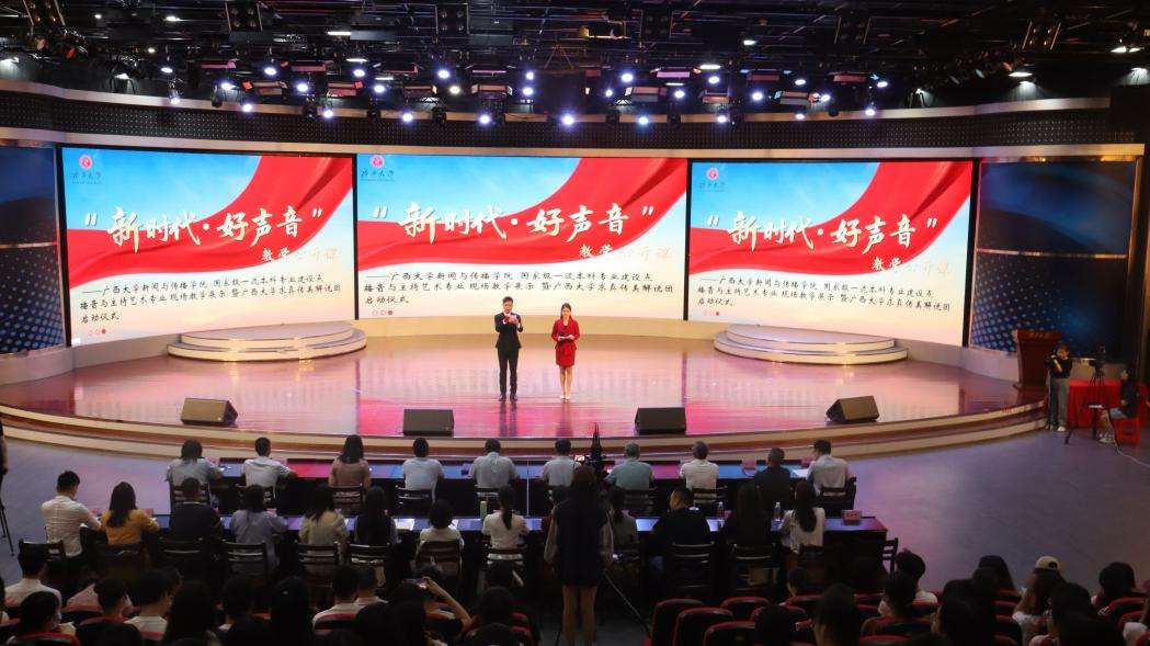 6月8日,Ky开元集团新闻与传播学院国家级一流本科专业建设点播音与主持艺术专业,以“新时代·好声音”为主题,在学院融媒体中心举行教学公开课现场教学展示活动。校团委和学院领导、播音业界一线专家、文博界“五好”讲解员代表,以及学院师生共计200余人到现场观摩。