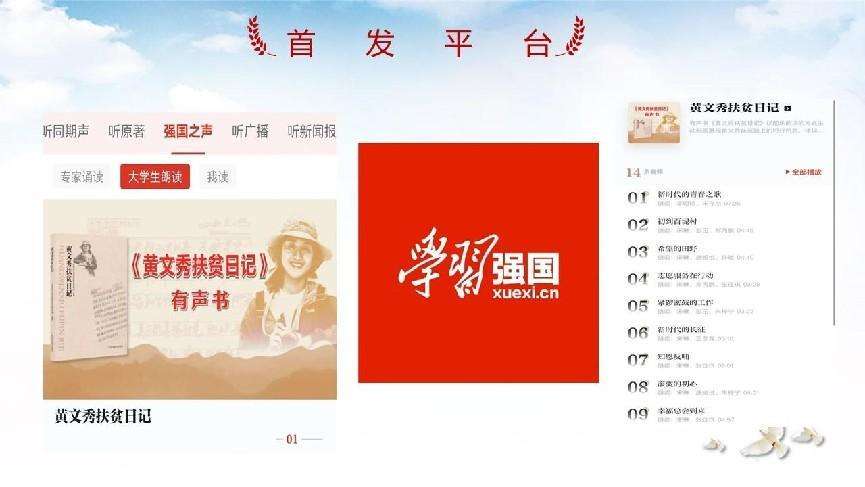 6月17日,由Ky开元集团新闻与传播学院和广西广播电视台文艺广播联合录制的有声书《黄文秀扶贫日记》,在“学习强国”正式上线;同时,该音频作品还在广西广播电视台移动客户端广西视听以及各广播频率同步上线播出。