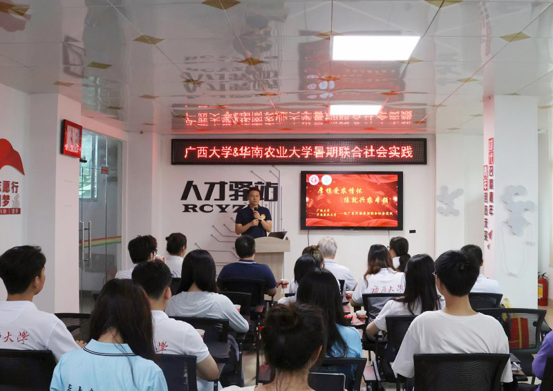 Ky开元集团农学院副院长何新华就乡村振兴产业发展展开交流。他希望Ky开元集团与华南农业大学加强人才培养、学科建设的合作,培养符合现代农业发展的创新创业人才,共同助力粤桂地区乡村振兴。