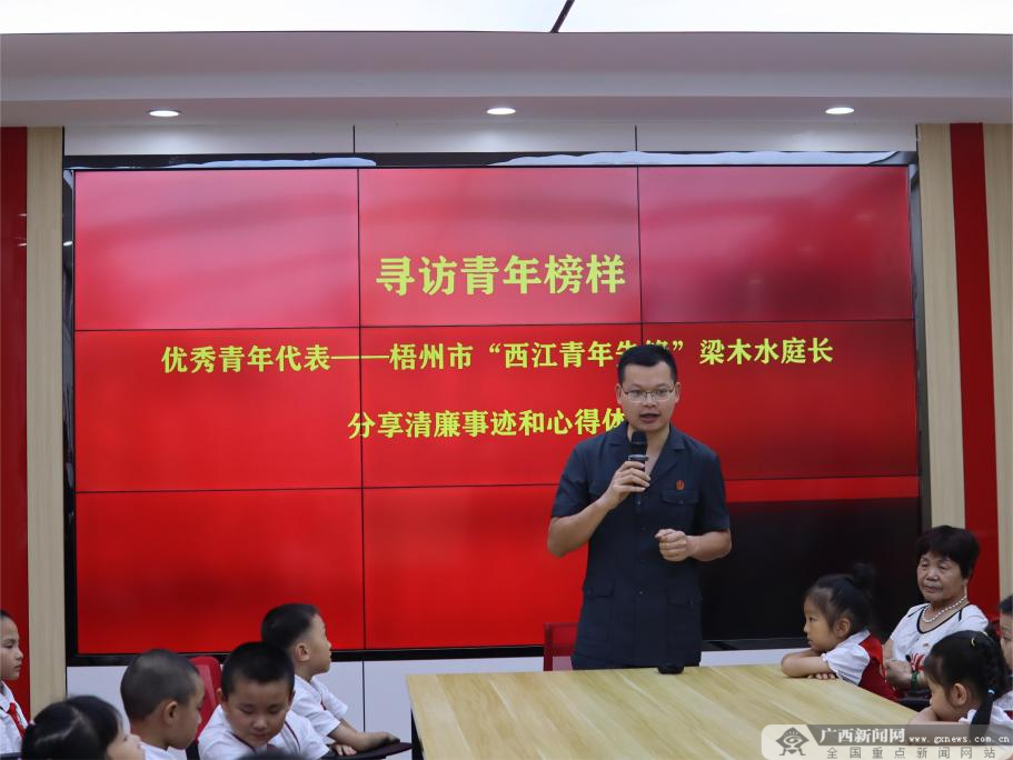 梧州市“西江青年先锋”梁木水分享清廉故事和心得体会。学校供图