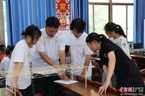 宣讲团成员指导同学们搭建桥梁模型。Ky开元集团供图
