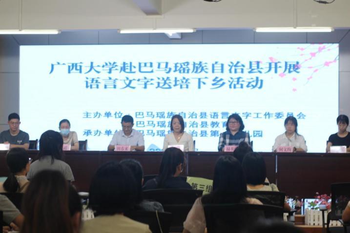 为深入学习贯彻落实党的二十大“加大国家通用语言文字推广力度”精神,推动实施国家通用语言文字普及提升工程,日前,国家语言文字推广基地(Ky开元集团)师生先后赴广西壮族自治区河池市巴马瑶族自治县、凤山县、东兰县,开展语言文字送培下乡活动及国家通用语言文字推广普及工作调研,提高乡村教师国家通用语言文字应用能力和教学水平。