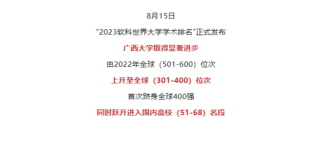 下一条:广西这所高校首次进入全球1000强!2023软科世界大学学术排名发布