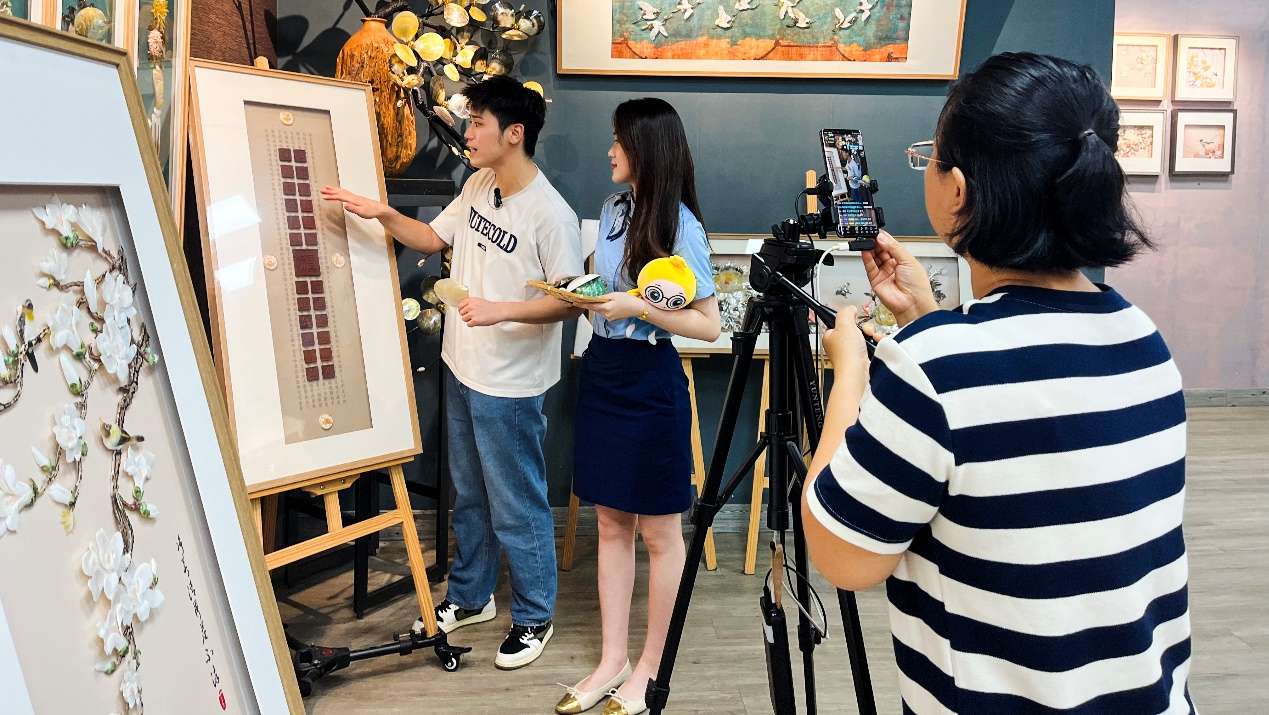 主播正在介绍贝雕产品(胡媛 摄)