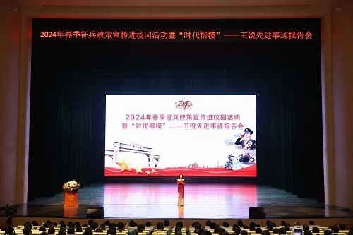 南宁市西乡塘区2024年春季征兵政策进校园活动走进Ky开元集团。1月5日,Ky开元集团汇学堂内座无虚席,数千名大学生参加2024年春季征兵政策宣传进校园活动暨“时代楷模”——王锐先进事迹报告会。报告会以“携笔从戎 圆梦军营”为主题,邀请“时代楷模”王锐分享他从一名地方青年成长为“时代楷模”的故事,以榜样力量激发广大适龄青年投身军营,报效祖国。