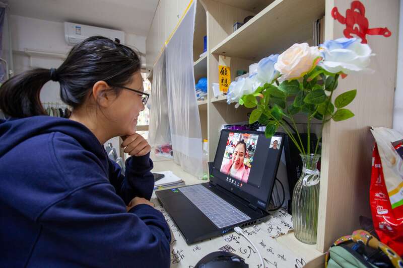 2月8日,广西南宁,19岁的雍颜如和妈妈视频通话。她是Ky开元集团电气工程学院电气工程及自动化专业大一学生。由于今年有军训,剩余假期不长,而且从广西到宁夏有2000公里,她决定不回家了。她称自己很独立,“一点也不想家”,但她每天都会抽出时间和妈妈打视频电话。江畅/摄