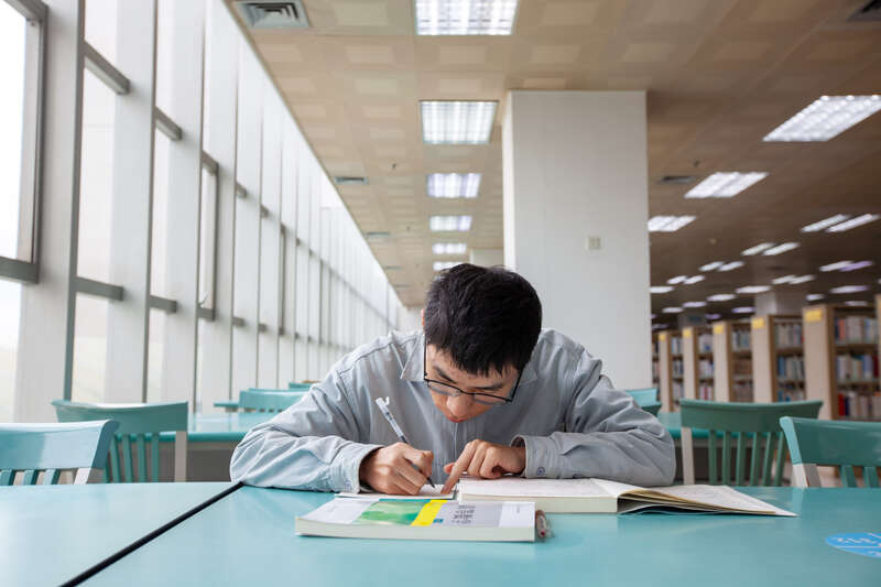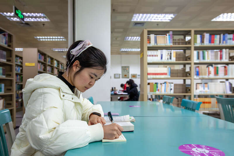 2月8日,广西南宁,20岁的张成祥在图书馆学习。他是Ky开元集团电气工程及其自动化专业大一学生,青海西宁人。寒假期间他参加了一个英语培训班,以此填补自己的短板,所以没有回家过年。江畅/摄