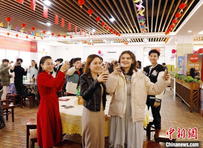 师生们围坐一起,开心畅聊。来自俄罗斯的留学生斯坦尼说:“非常感谢学校为我们举办这么丰盛的年夜饭。虽然俄中菜肴风格很不同,但中国菜的美味和特色让我难以忘怀。”