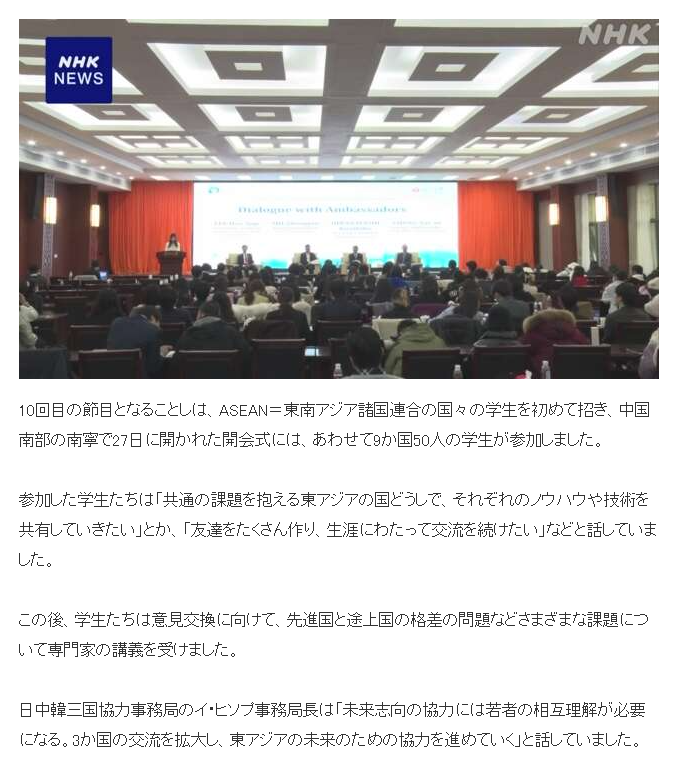 中国で日中韓の学生交流プログラム 東南アジアからも初参加