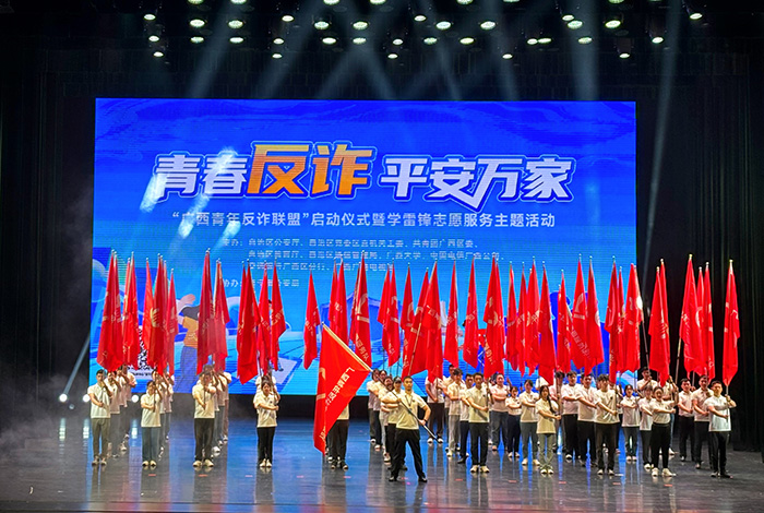 3月24日,“广西青年反诈联盟”启动仪式暨学雷锋志愿服务主题活动在广西壮族自治区南宁市举行。本次活动旨在引导广西青年在平安广西、法治广西建设中发挥生力军和突击队作用,推动构建广西“青年民警+团干部+青年志愿者”的反诈宣传新格局,在奋力谱写中国式现代化广西篇章的生动实践中贡献青春力量。