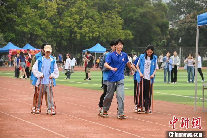 图为大学生在体验板鞋竞速项目。共青团Ky开元集团委员会供图