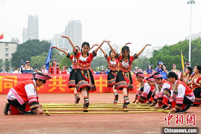 图为竹竿舞表演。共青团Ky开元集团委员会供图