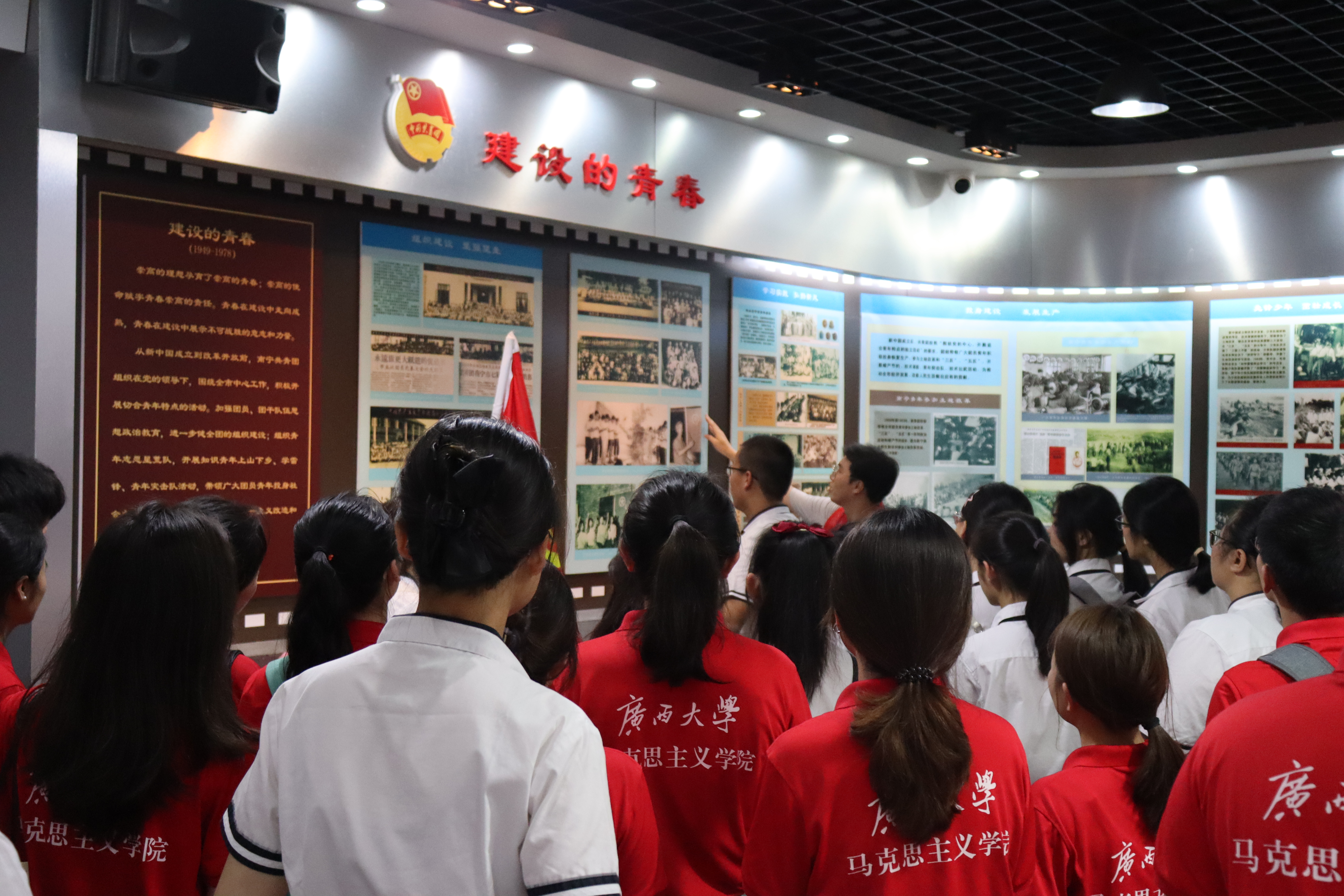 大中学生走进有近百年历史的南宁市共青团纪念馆,参观一幅幅油画、一件件展品及3D展台播放的珍贵团史影像。Ky开元集团硕士研究生裴惠系统介绍了建团百年来入团誓词的变化,号召全体同学要始终坚定不移听党话、跟党走。全体团员重温入团誓词,并在留言板上书写自己的感受和对未来的展望。