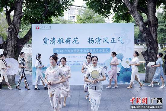 现场歌舞《荷塘月色》、荷花主题国风旗袍走秀、“荷花仙子”湖面巡游等精彩节目引得路人纷纷驻足欣赏,荷花主题摄影及书画作品展、荷花DIY油画和漆扇体验等系列活动更是吸引了众多师生前来“打卡”。大家纷纷在廉洁主题横幅和倡议书上签名,表达自己弘扬敬廉崇洁优良传统、增强廉洁自律意识、培养学术自律精神、建设清廉西大的决心。