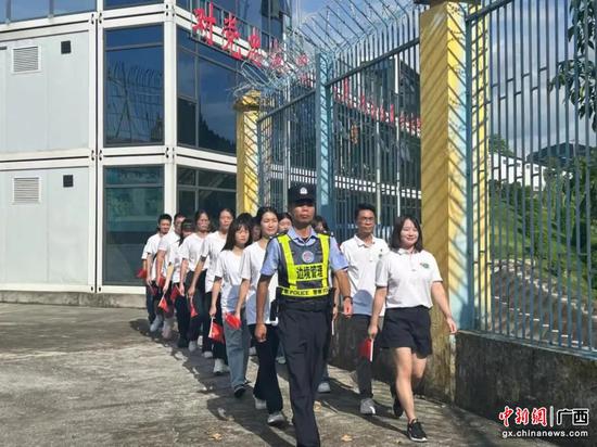 化学化工学院实践团在尖峰岭哨所参与一次升国旗仪式;计算机与电子信息学院实践团在广西天池国防民兵哨所听民兵代表讲述了战士们在边境上坚守岗位、为国护边的感人事迹;资源环境与材料学院实践团在水口边境派出所观看了关于守护边境的专题宣传片;电气工程学院实践团跟随南方电网“国旗巡线班”进行边境巡线。哨所战士及戍边民警们给实践团青年们上了一堂生动走心的国防教育课,也让青年们感悟到了“守边有我,请党放心!”的深刻内涵。