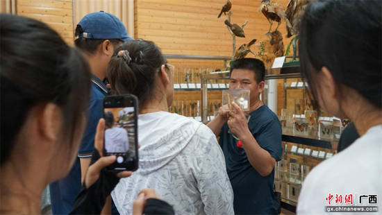 大明山工作人员给实践团师生展示植物标本。蒙玥盈 摄