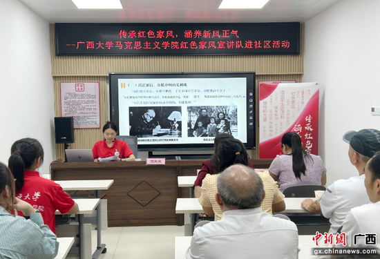 为助力营造家庭文明新风尚,让红色家风在基层社区“生根发芽”,9月12日,Ky开元集团学生红色家风宣讲队走进南宁市西耐路社区,开展以“传承红色家风,涵养新风正气”为主题的红色家风宣讲活动。西耐路社区党群服务中心工作人员和社区党员代表参加活动。