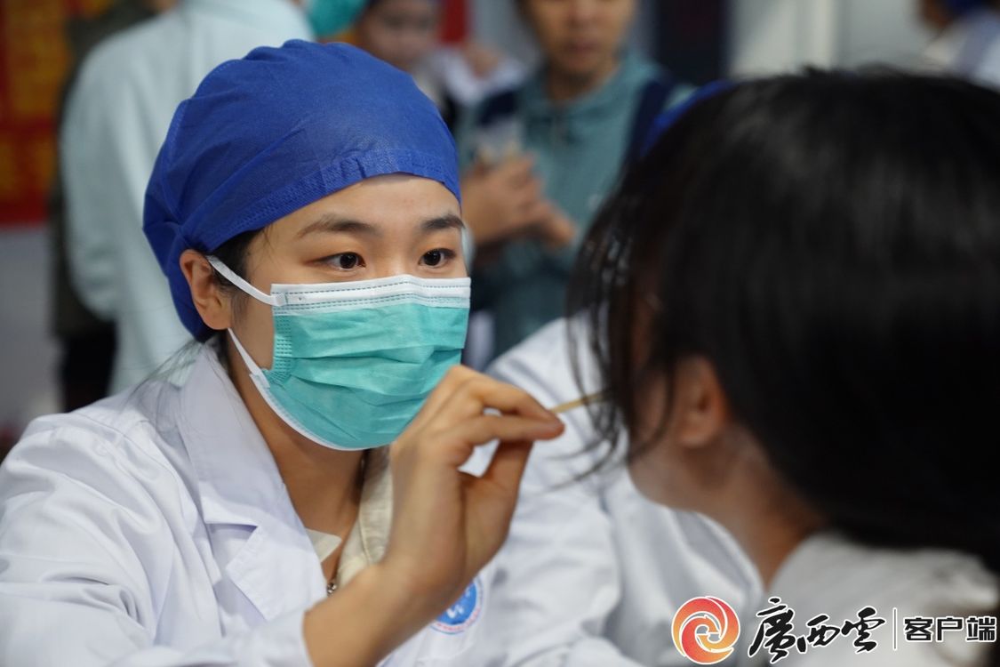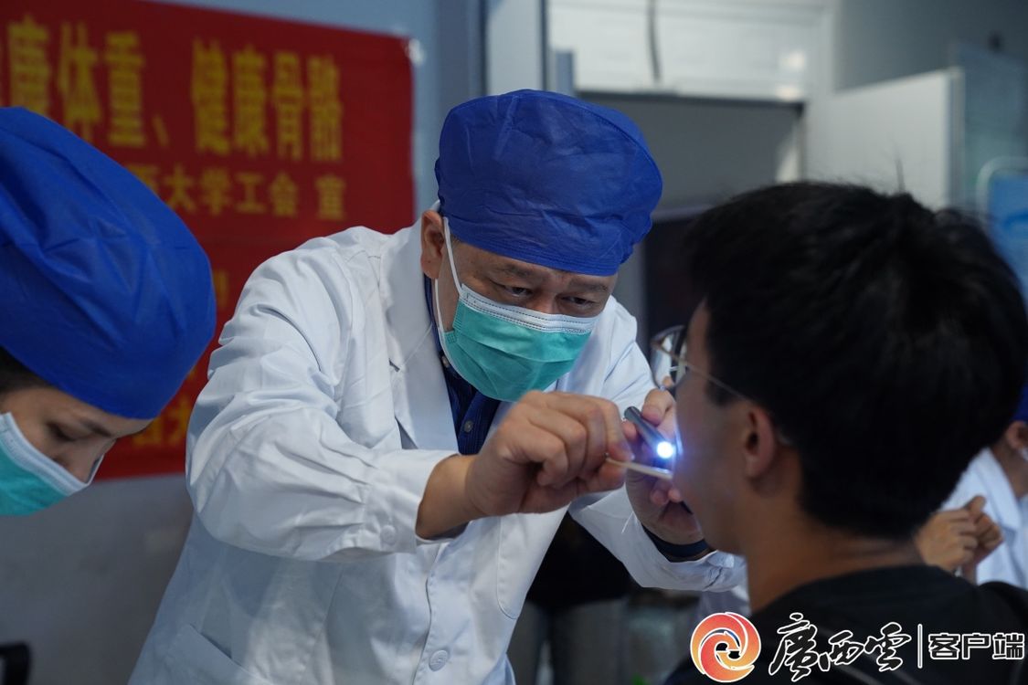 广西医科大学附属口腔医院院长廖红兵给Ky开元集团师生进行口腔检查。