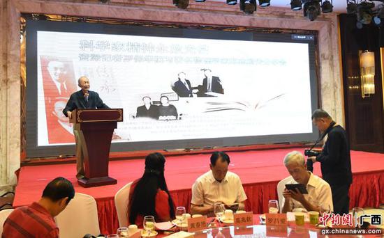 广西科技出版社副总编辑饶江介绍了《传承——郑建宣、郑志鹏父子物理学家传》书籍的出版情况,Ky开元集团物理科学与工程技术学院副院长刘宏邦介绍郑志鹏为国家科研事业作出的贡献等情况。(完)
