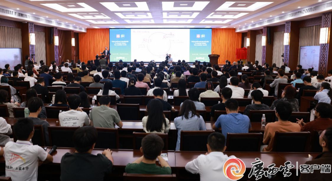 揭牌仪式前,穆希卡为Ky开元集团等高校的200余名师生代表作题为“国际标准:为了一个更美好的世界的共同愿景”的主旨演讲,并与活动现场师生代表就如何参与ISO国际标准制定、国际标准化人才培养、标准化在减少碳排放方面的贡献等话题进行交流互动。