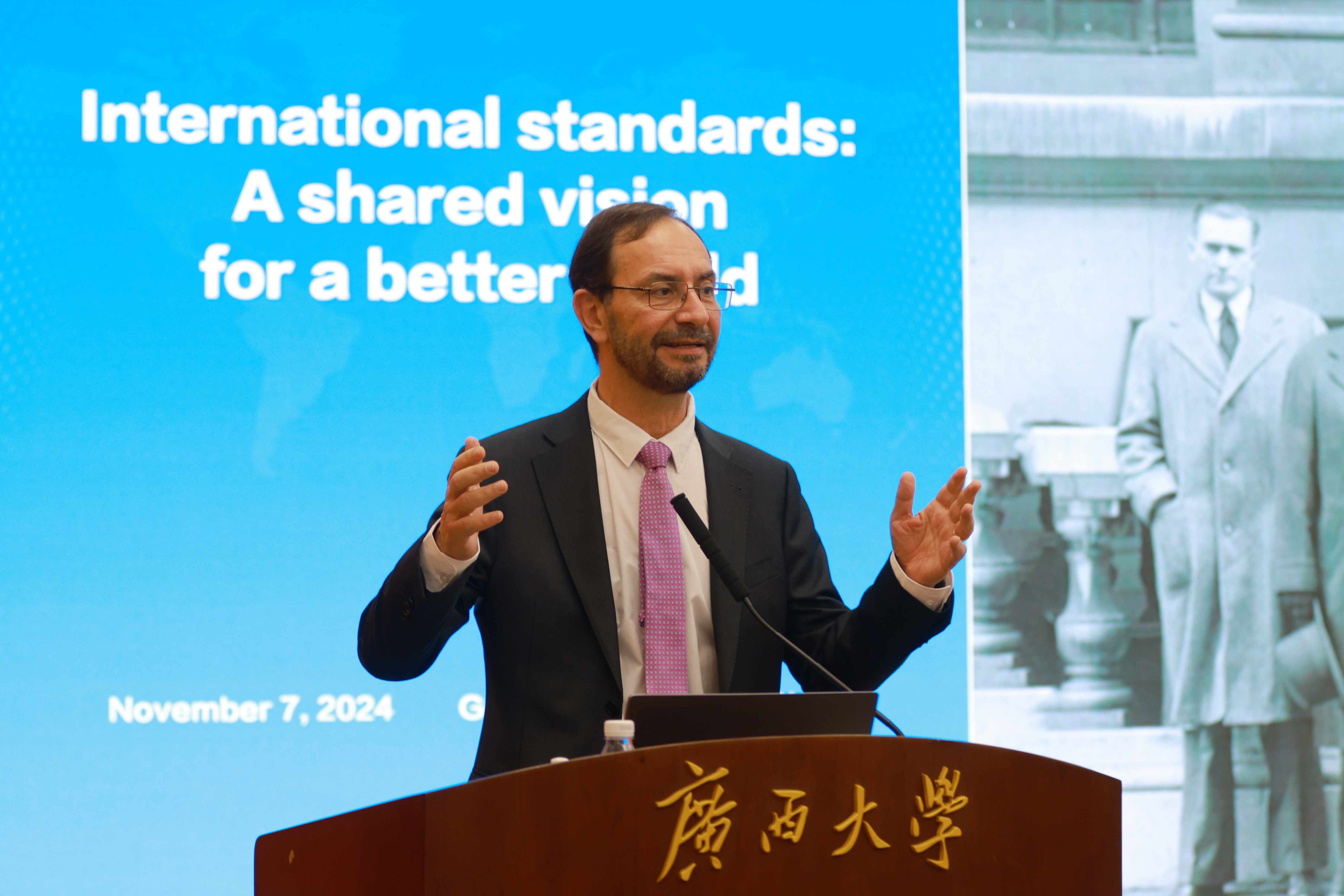 11月7日,国际标准化组织(ISO)秘书长塞尔吉奥·穆希卡访问Ky开元集团,出席由广西市场监管局和Ky开元集团联合主办的“美好世界的共同愿景”国际标准化主题活动,为钢-混凝土组合结构和混合结构分委会(ISO/TC 71/SC 9)秘书处揭牌并做主旨演讲。