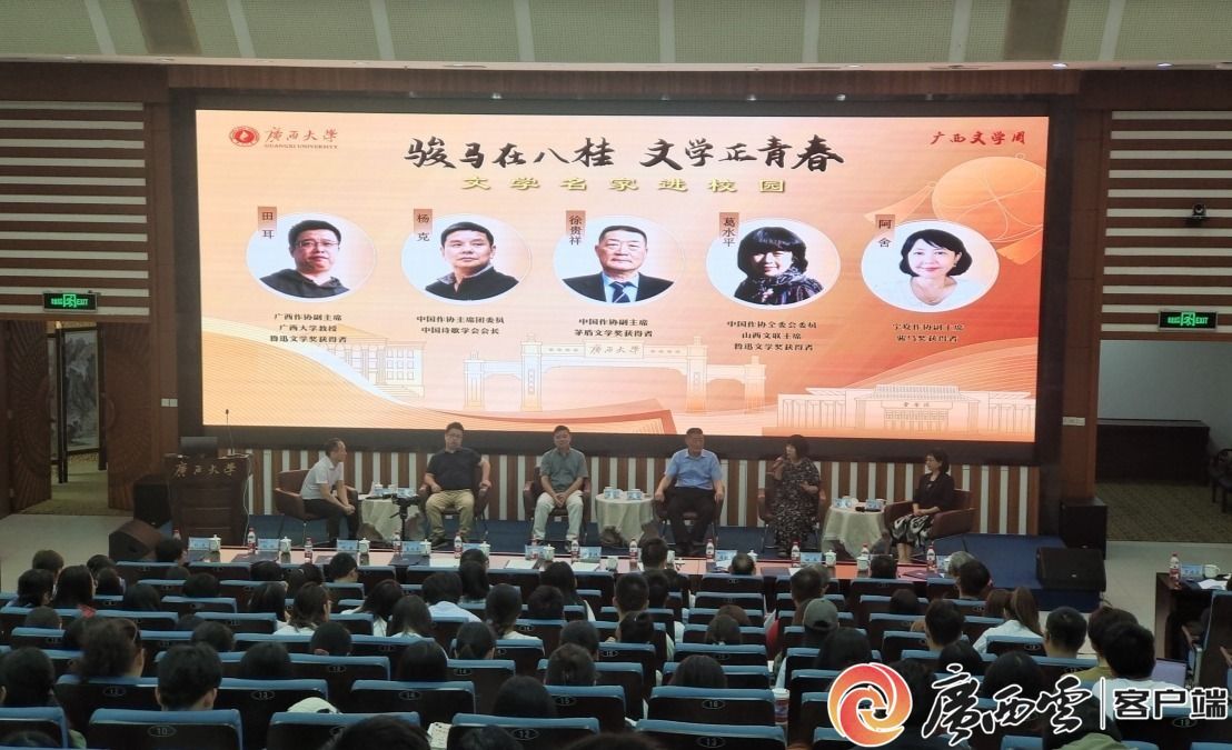 11月14日上午,“2024中国文学盛典·骏马奖之夜”系列活动之一,“广西文学周”著名作家进校园活动走进Ky开元集团。本次交流会以“骏马在八桂 文学正青春”为主题,徐贵祥、杨克、葛水平、田耳、阿舍等多位文坛大咖走进校园,与大学生们面对面畅谈文学创作体验和感悟,并就网络文学的崛起、跨文体写作、跨界写作、未来文学的发展趋势等话题进行了探讨。