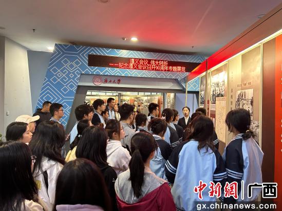 听讲解、看照片、读史料、学知识,团员青年们跟着讲解员跨越时空,沉浸在遵义会议的伟大历史时刻。