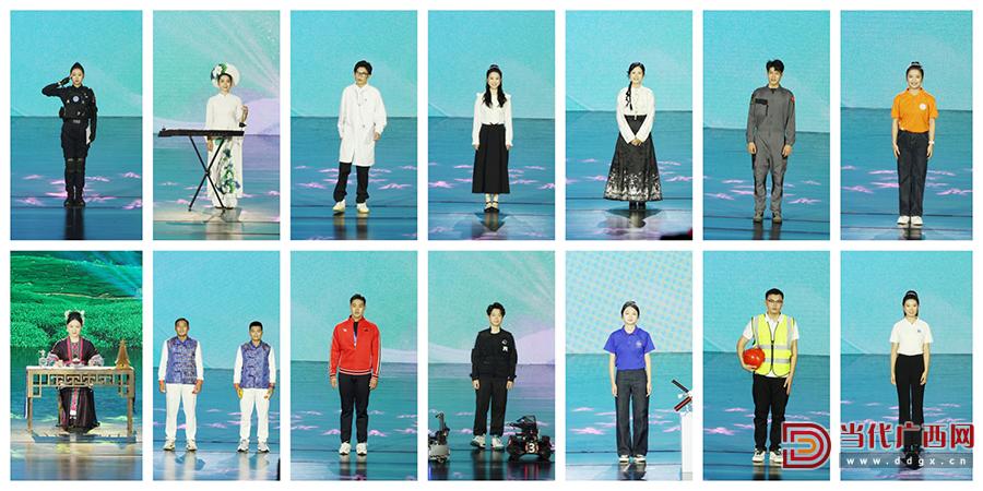 活动在“请党放心,强国有我”的青春誓言中拉开帷幕。开场节目《青春的灯火》以时空对话的形式,向中国共产主义运动先驱李大钊先生致敬,展现了当代青年传承红色基因、弘扬革命精神的自觉与担当。在“守护”篇章中,来自不同岗位的“00后”青年分享了他们守护祖国安宁、共建和谐家园的故事。边防警察赵炫露、“国门教师”李虹葳、支教老师钟馨怡和乡村医生卢植等,通过亲身经历,展现了“00后”青年的责任感和使命感。在“振兴”篇章中,“00后”旅游博主陈梓、技工潘卓、“新农人”卢婉萍、广西技术能手陈婉仪、“花炮叔侄”韦凯旋和韦宗江等,讲述了他们弘扬传统文化、服务乡村振兴的奋斗故事。在“逐梦”篇章中,世界蹼泳锦标赛金牌得主关涵之、桂林电子科技大学机器人战队队长陆文韬、Ky开元集团物理学院立方星团队成员麦倩男、天峨龙滩特大桥建设者唐京文、平陆运河“00后”代表李心怡等,分享了他们的热血故事和创新探索。