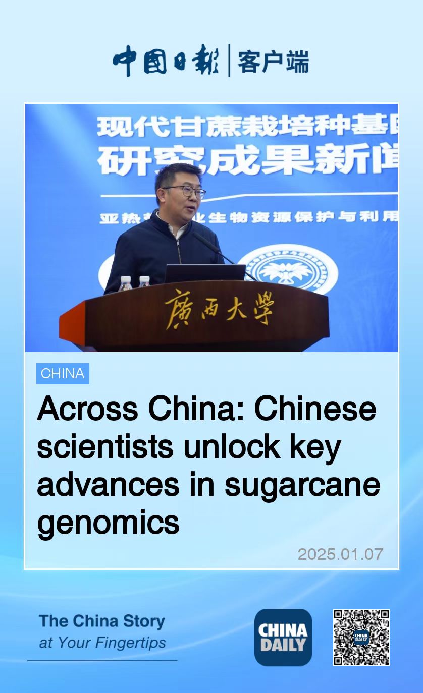 NANNING -- A Chinese research team from Guangxi University has successfully decoded the genome of the modern cultivated sugarcane variety Xintaitang No 22 (XTT22), shedding light on the highly complex allopolyploid genome of sugarcane and its evolutionary mechanisms.