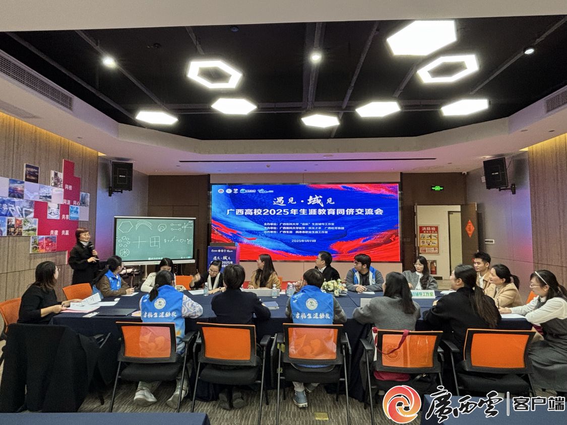 1月11日,“遇见·域见”广西高校2025年生涯教育同侪交流会在广西医科大学屹牙·校友之家举行。此次大会由广西医科大学“启航”生涯辅导工作室主办、广西医科大学屹牙·校友之家承办,广西生涯、向未来职业生涯工作室协办。来自省市机关、事业单位、企业与13所高校的近60位生涯教育同行参加活动。会议有遇见·生涯教育主旨分享报告、域见·生涯教育圆桌交流会、生涯导师聘书颁发、生涯教育研讨四项议程。