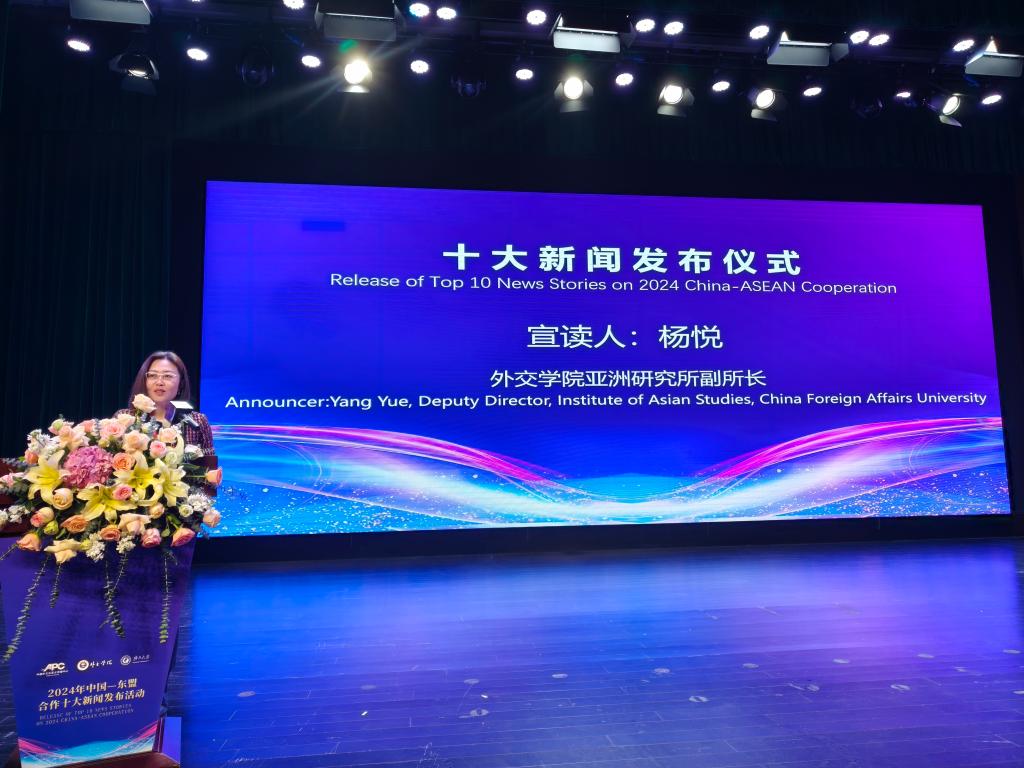 外交学院亚洲研究所副所长杨悦介绍,“2024年中国—东盟合作十大新闻”由中国外文局亚太传播中心和外交学院亚洲研究所联合相关学术机构共同评出,评选标准聚焦新闻的重大性、代表性、创新性、持续性和广泛性,尤其注重其对区域合作的长期影响与全局价值,以及过去一年中国与东盟在元首外交、“一带一路”合作以及其他重要领域取得的成就。