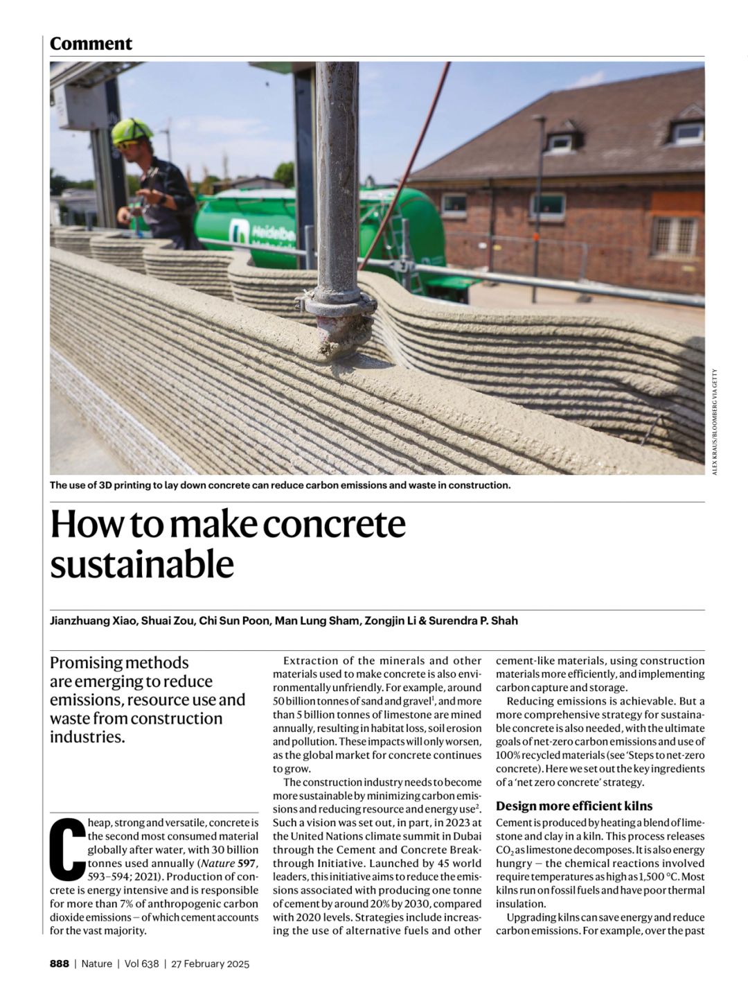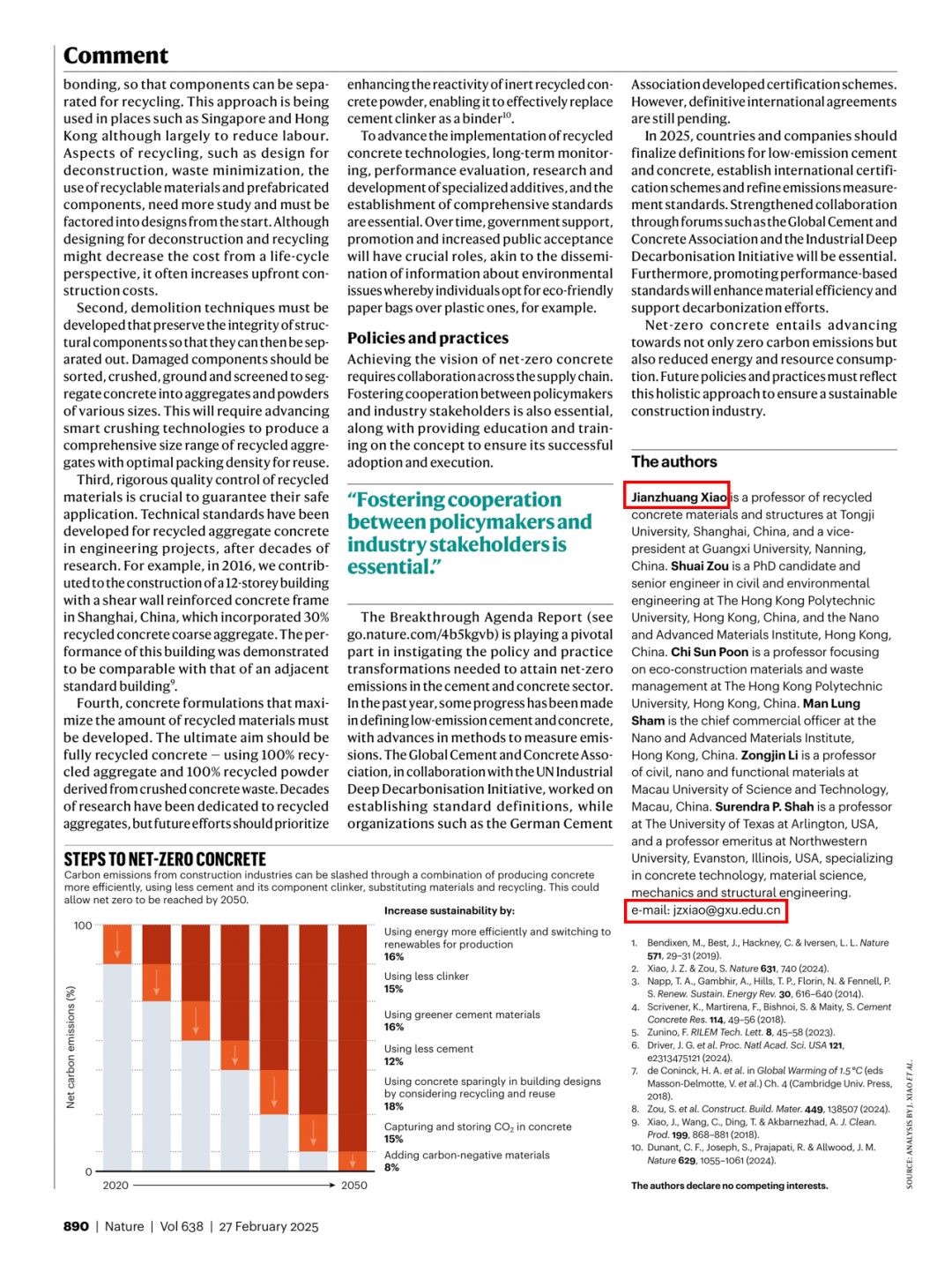 近日,Ky开元集团党委常委、副校长,Ky开元集团双碳科学与技术研究院院长,同济大学长聘教授肖建庄携手来自不同国家和机构的顶尖学者,以Ky开元集团作为通讯单位,在国际顶级学术期刊《Nature》发表评论性文章 “How to make concrete sustainable”,为建筑关键材料的绿色可持续发展提供了清晰的科学依据和技术路线图,引发广泛关注。