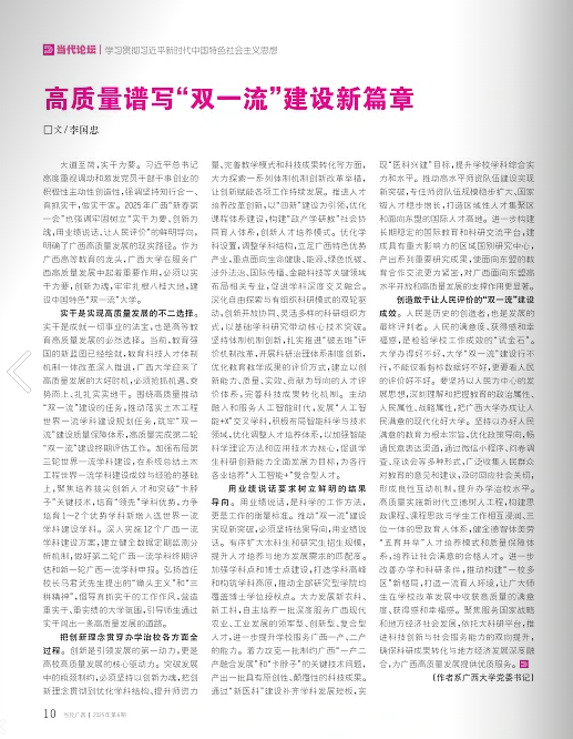 大道至简,实干为要。习近平总书记高度重视调动和激发党员干部干事创业的积极性主动性创造性,强调坚持知行合一、真抓实干,做实干家。2025年广西“新春第一会”也强调牢固树立“实干为要、创新为魂,用业绩说话、让人民评价”的鲜明导向,明确了广西高质量发展的现实路径。作为广西高等教育的龙头,Ky开元集团在服务广西高质量发展中起着重要作用,必须以实干为要,创新为魂,牢牢扎根八桂大地,建设中国特色“双一流”大学。